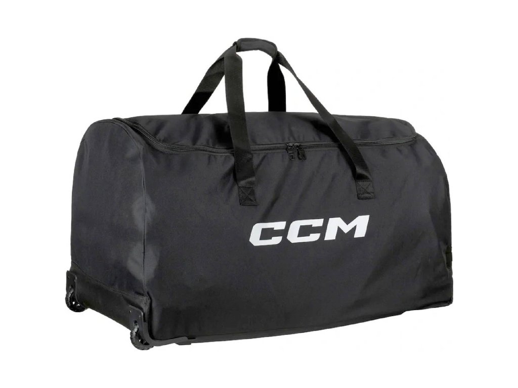 Akce! Hráčská hokejová taška CCM EB 420 v černé barvě, délka tašky 36" (91,4 cm). Tato hokejová taška na kolečkách je vybavena terénními kolečky a pohodlnými síťovanými držadly a je ideální pro přepravu vašeho vybavení v jakémkoli terénu a podmínkách. Je také vyrobena z odolného polyesterového materiálu 600D, který udrží vaše vybavení v bezpečí.Materiály : Konstrukce z polyesteru 600DKolečka : Terénní kolečkaDržadla : Dvoupalcová síťovaná ucha. CCM logo : Nadměrné tištěné logo CCM